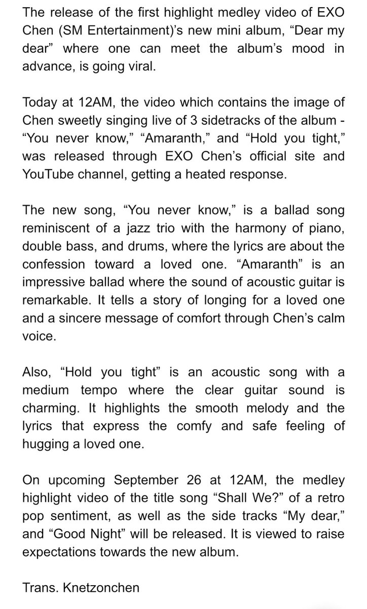 Knetizens On Chen On Twitter Trans Article With Comments Exo Chen Dear My Dear Highlight Medley Video Released Foretells The Well Made Ballad Link Https T Co Pmxi4jmkuo Https T Co V7djpufnby Hati jantung hatinya jantungnya hatiku.